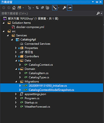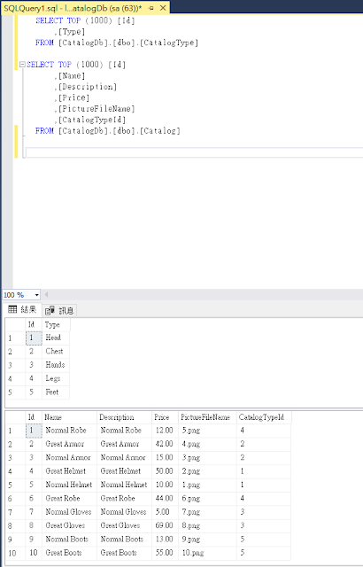 前述的CatalogType和CatalogItem兩個Entity加入至CatalogContext的DbSet,才能對這兩個做CRUD的功能。
