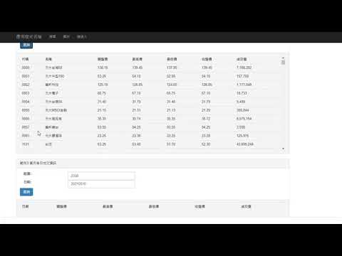 在範例畫面上輸入要查詢的日期,查詢後就會列出當日所有股價的 K 線價格。