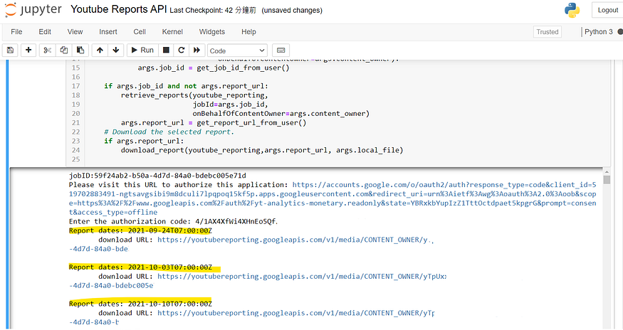 YouTube Reports API 能夠使開發人員安排報告的排程,並且批量下載生成報告。對於 YouTube Reports API 而言, API 支持預先所以定義好的報告內容,並且每個報告都包含一組針對頻道使用者或內容管理員 YouTube 資訊。靈活的追蹤每 Youtube 影片的影片資訊,也有了更加彈性的資料運用方式。這篇是 Python - 數位行銷的 Youtube 分析教學系列文章的第 28 篇,也是我參加 2021 iThome 鐵人賽中系列文章的第 28 天。
