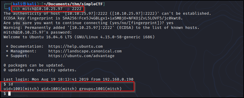 我們發現的用戶名和密碼,我們可以嘗試通過 SSH 連接到目標機器。