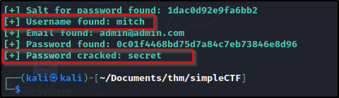 我們得到了從漏洞利用返回的用戶名和破解密碼嗷