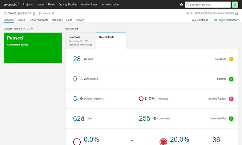 PDF report generated (see WebApplication1-2023.07.21.15.04.45.pdf on build output directory)