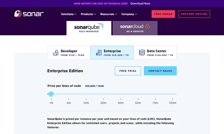 以 Enterprise 版本來說最便宜的也要每年 20,000 美金