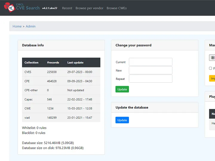 選擇 CVE-Search Management 頁面,依序調整如下。