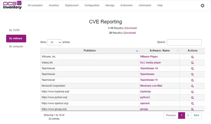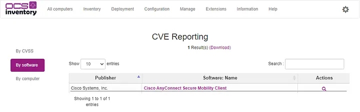 透過下列指令來對 OCS Inventory 盤點到的軟體進行 CVE 掃描