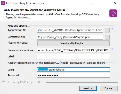 我習慣將其改名為 OcsPackage-WindowsAgent-2.9.1.0.exe