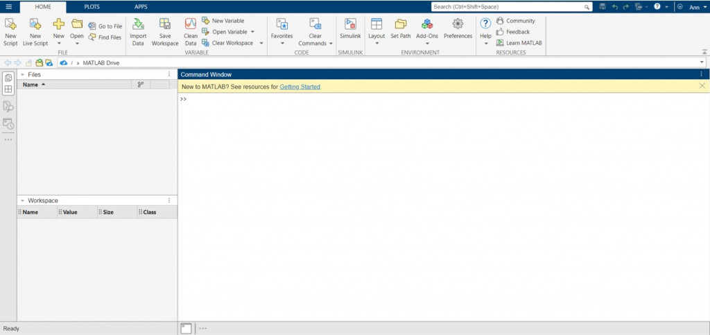 啟動MATLAB軟件。確保已經安裝了MATLAB。如果還未安裝,可以從MathWorks官方網站下載MATLAB的試用版或訂閱版本,也可以使用線上版,我本身的話是使用線上版。