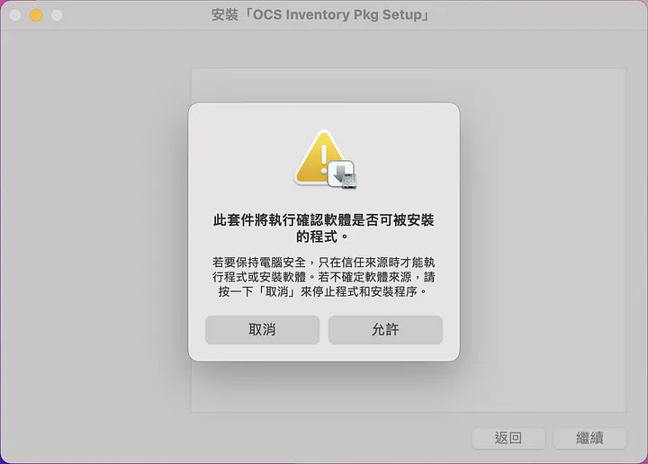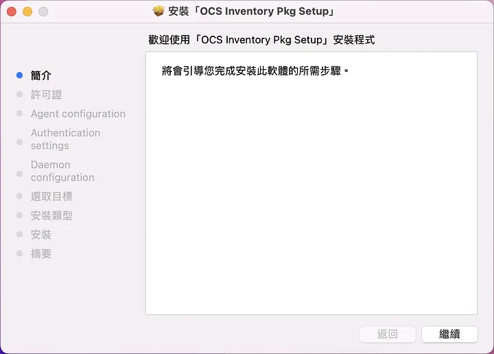 下載完畢後進行解壓縮,執行 OCS Inventory Pkg Setup.pkg