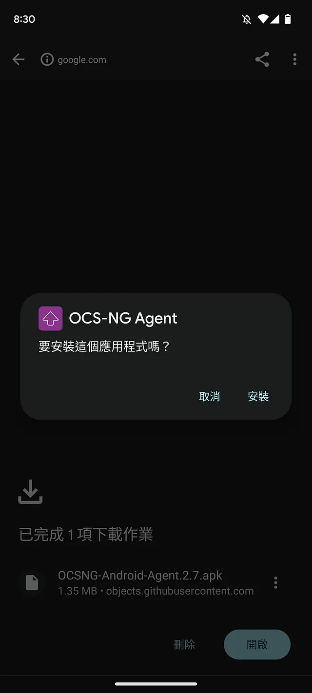 執行 OCSNG-Android-Agent.2.7.apk,安裝完成後開啟 OCS-NG Agent。
