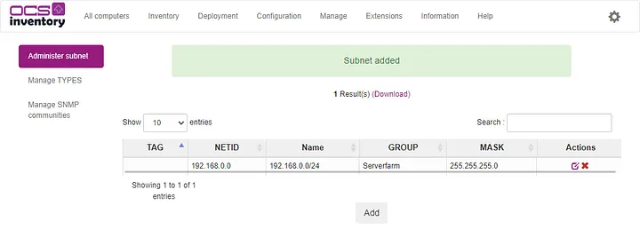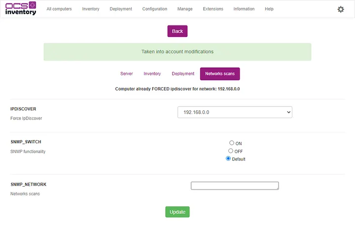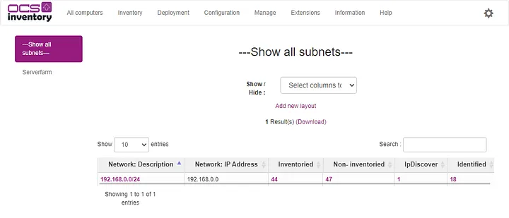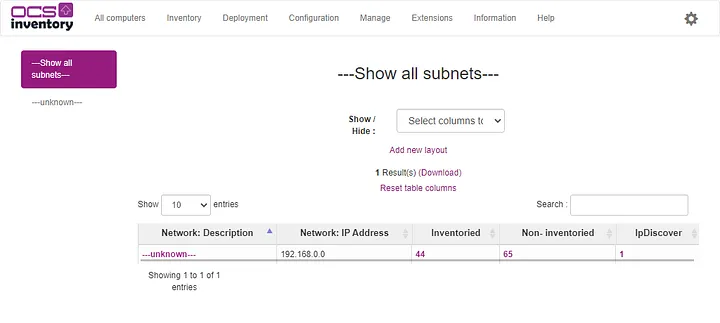 每當代理程式發送盤點結果時,OCS Inventory 伺服器將會決定是否需要掃描該子網中的主機,最後透過 Gateway IP 地址來生成企業網絡地圖。