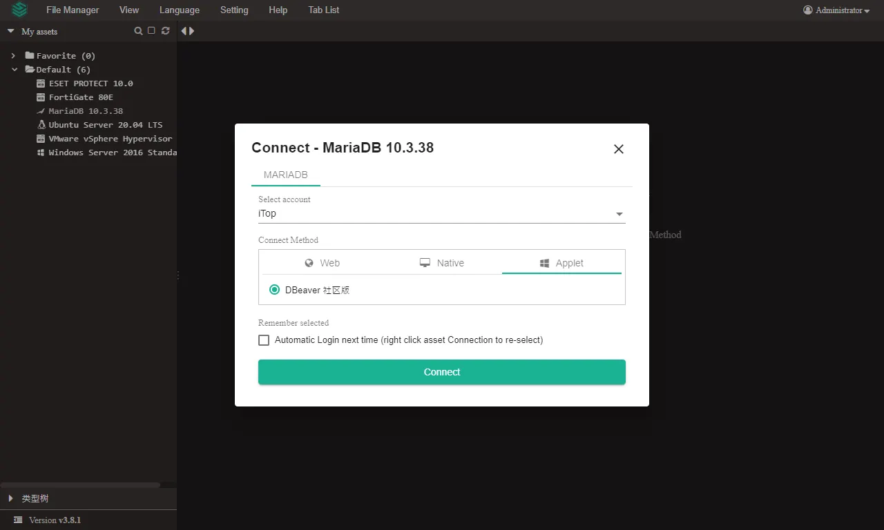 使用 MARIADB,選擇 Applet 連線方式,點選 Connect。