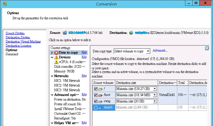 vCenter Converter 在轉換過程中會部署一台 Helper VM