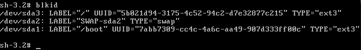 同樣進入救援模式,先用 fdisk -l 確認一下 SWAP 是 /dev/sda2 沒錯。