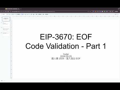 今天的影片中討論 EIP-3670,這個 EIP 定義了如何去驗證一個 EOF 的 Code Section