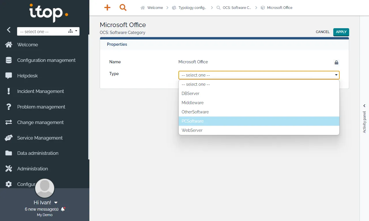 設定在 iTop 中相應的 PC Software 類別,點選 Apply。