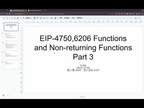 今天的影片中要來討論 EIP-4750 與 EIP-6206 ,一個嶄新的用來詮釋新的 EOFv1 code section 格式的方法,叫做 functions,由於這兩個 EIPs 都與 functions 息息相關,因此我們放在一起講,有點長,我們預計要講四天。