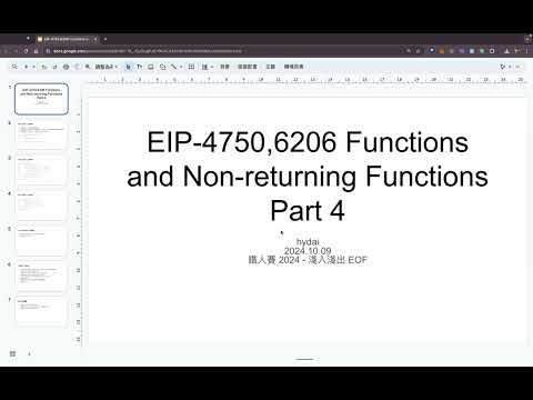 今天的影片中要來討論 EIP-4750 與 EIP-6206 ,一個嶄新的用來詮釋新的 EOFv1 code section 格式的方法,叫做 functions,由於這兩個 EIPs 都與 functions 息息相關,因此我們放在一起講,有點長,我們預計要講四天。