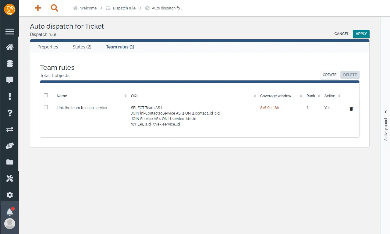 此擴充功能會根據設定的排程規則自動將工單分派給團隊。