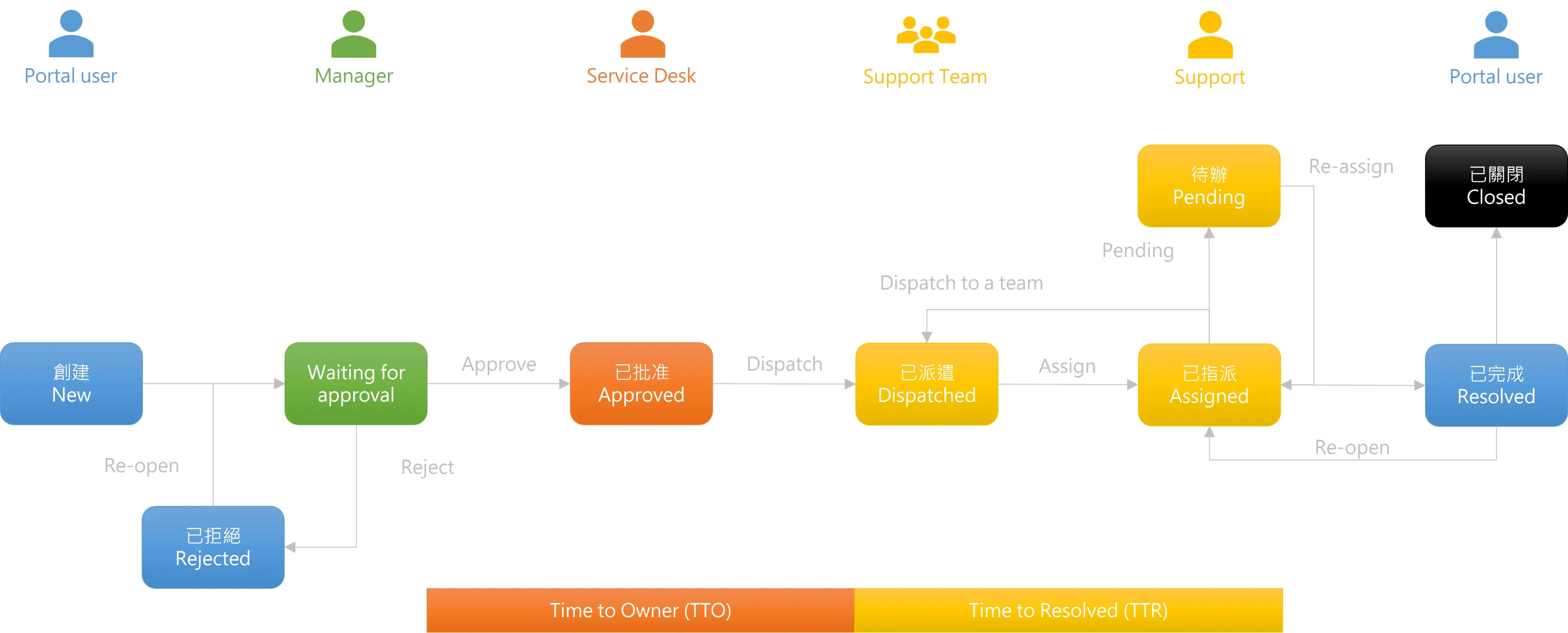 我們可以從上面的生命週期看出,服務台人員已經不存在 Auto Dispatch 流程了,完全解放雙手,不需要再把時間浪費在分派請求或事故的作業。