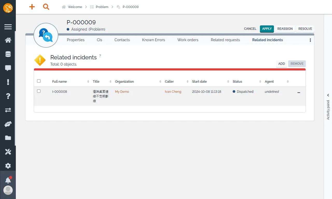 當 IT 工程師在記錄問題時,其根本原因可能仍然未知。因此,這類型的工單允許記錄所有為找到根本原因並解決問題所做的操作。