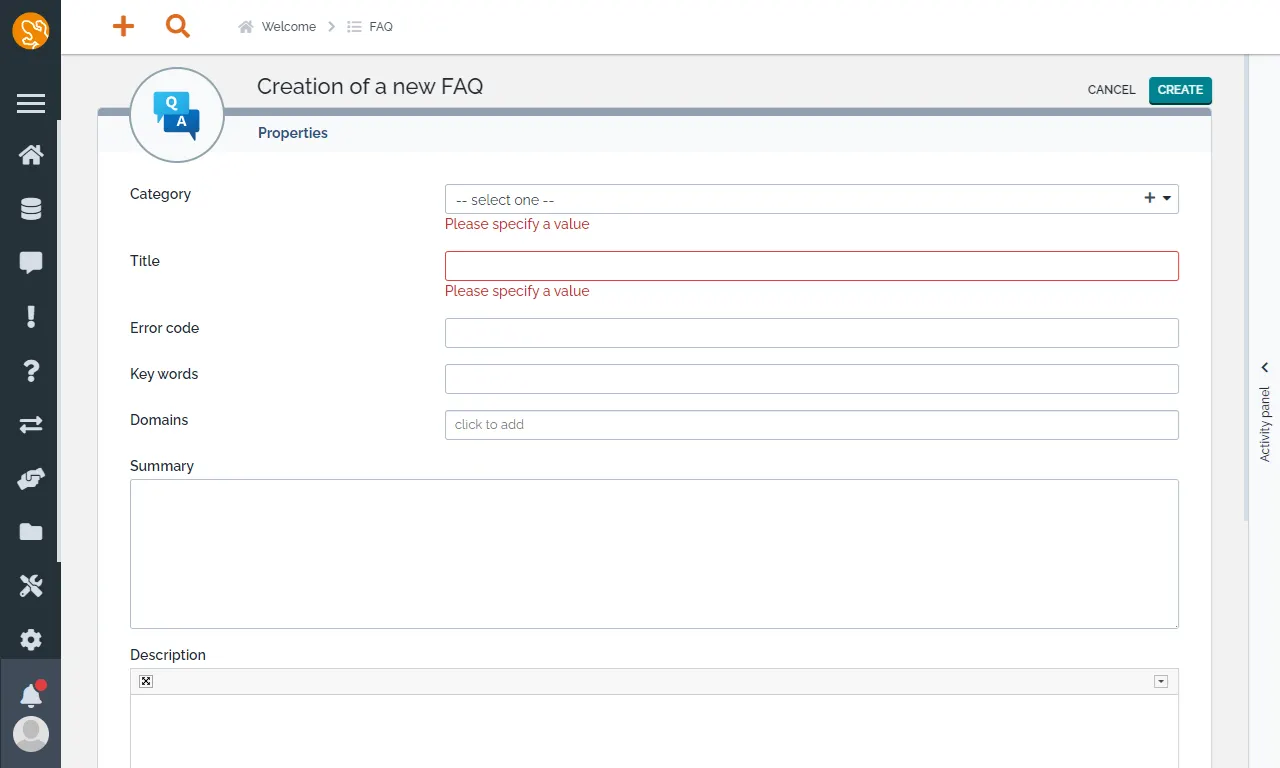 常見問題與解答 (FAQ),用於記錄使用者提出的有關服務的最常見問題與解答,有助於降低服務台人員的工作負擔。