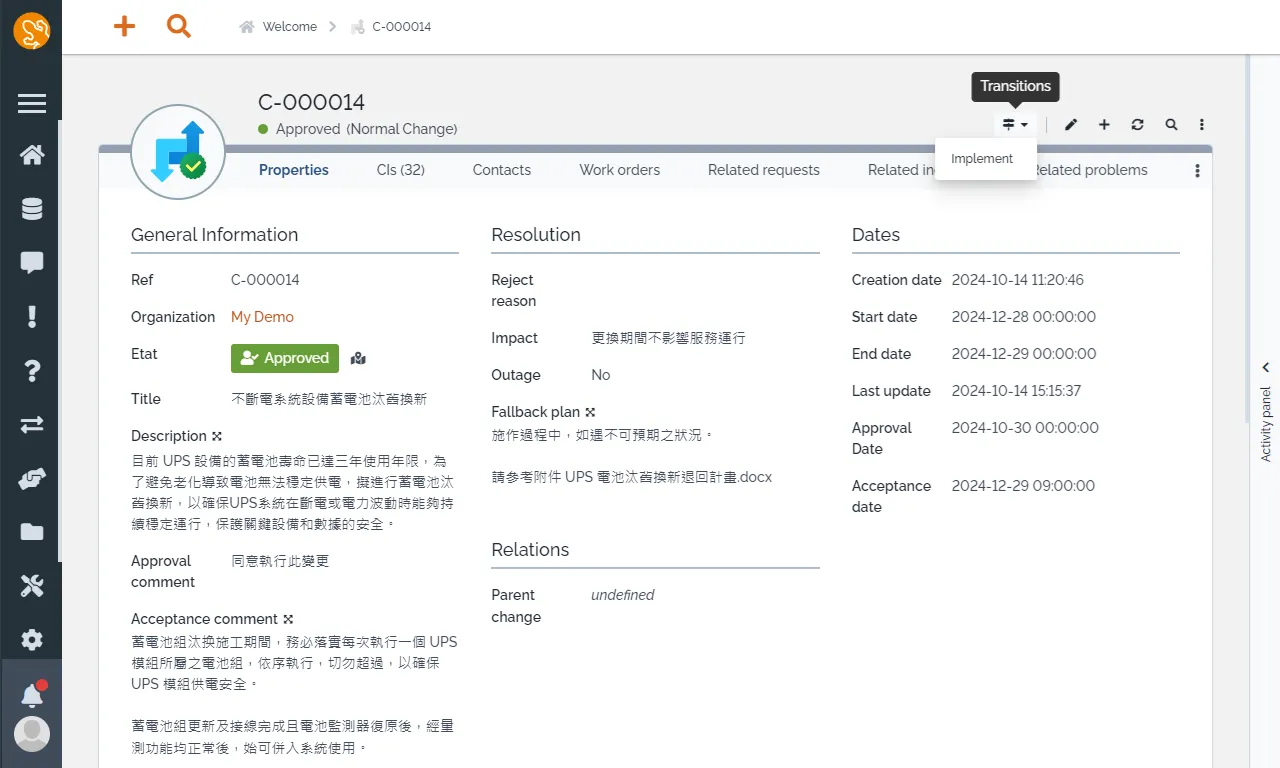 接著,來看看 iTop 的 Normal Change Life Cycle 長怎樣。