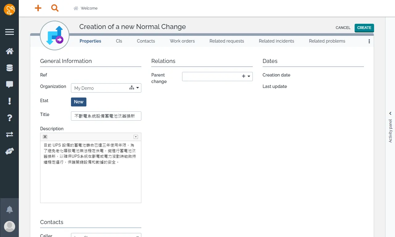 在 iTop 的變更管理將變更分類為三種類型來實施 ITIL V3 的變更,每種類型的變更都有其特點和流程。
