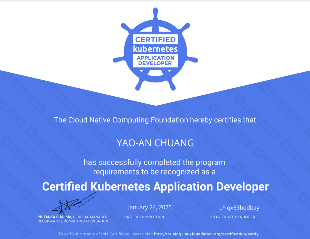 評估了一下考試範圍後(CKS需要先考過CKA因此暫不考慮),決定先從CKAD開始熟悉k8s。當然這不代表CKAD比較簡單,相反之前在網路上爬文時看到普遍覺得CKAD難度高於CKA