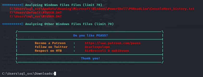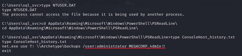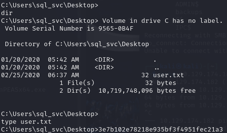 user.txttype C:\Users\sql_svc\Desktop\user.txt