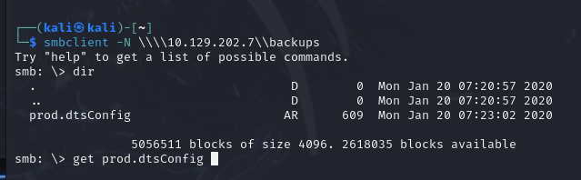 backups 共享資源smbclient -N \\\\{TARGET_IP}\\backups