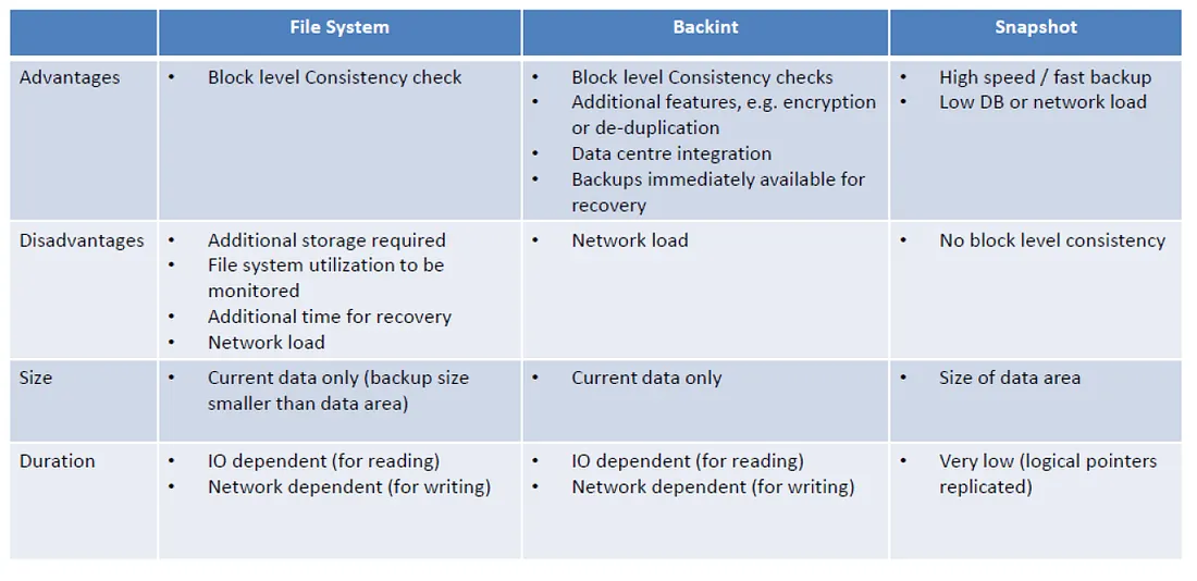 HANA支援下列的備份模式