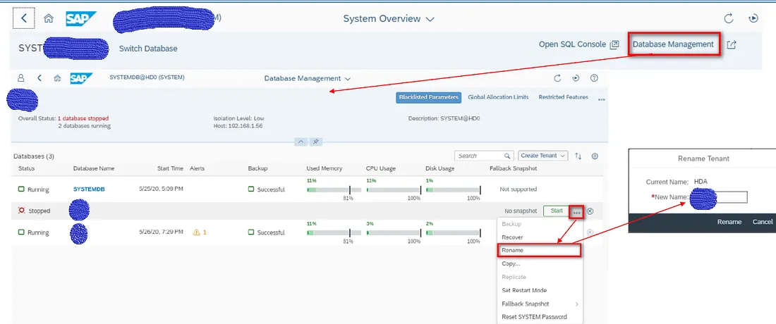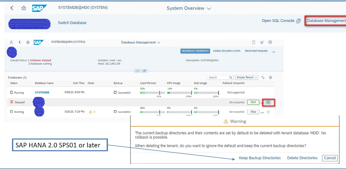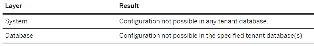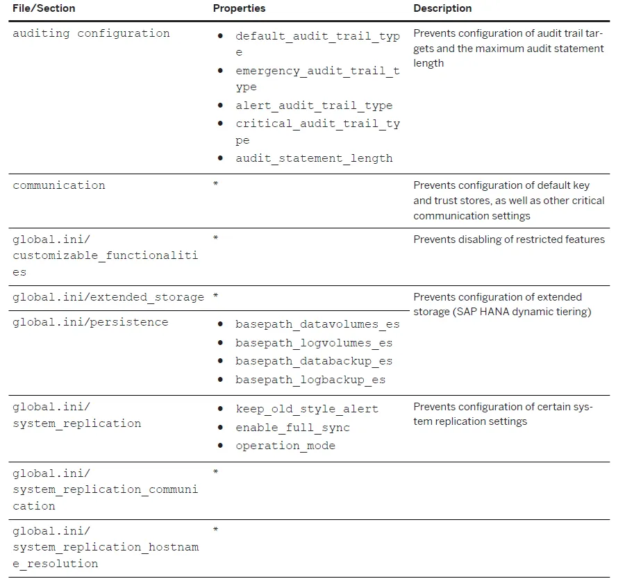 雖然我們可以有很多個tenant DB給不同的DBA管理(假設我們有一個 DBA team),身為公司的DB最高管理者你可能還是希望有些菜鳥DBA不要去動到該tenant DB的重要設定,SAP HANA就提供了這樣的功能。叫做 Configuration change backlist(在設定檔 multidb.ini的readonly_parameters區域中).