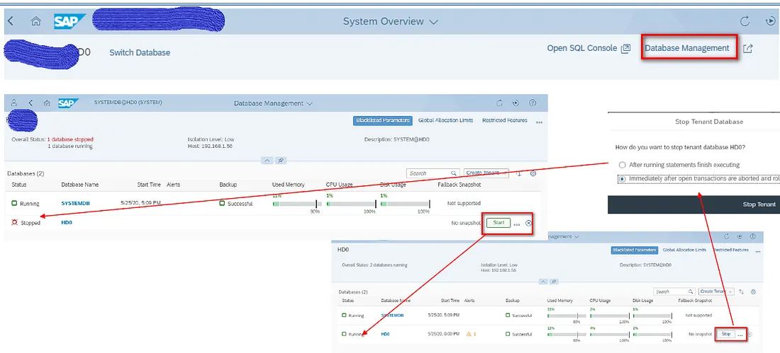 使用cockpit開啟或關閉tenant DB(如下圖)