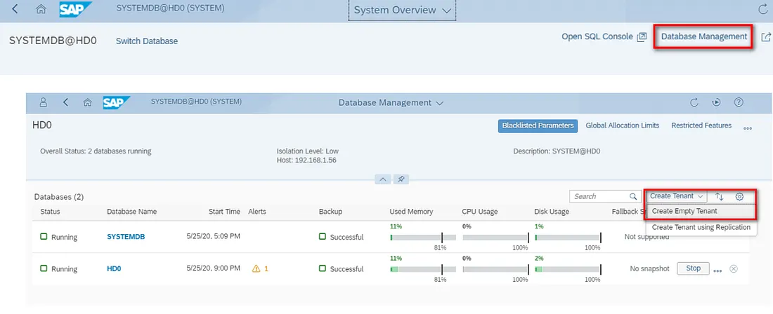 雖然前面有提及每一個Tenant DB可以使用OS中不同的USER/GROUP來達到高度隔離,但有時候有些跨Tenant DB狀況仍免不了,像是要產生報表資料之類。SAP HANA提供的跨Tenant DB-Cross-Database SELECT的功能,這個功能預設是沒有打開的。
