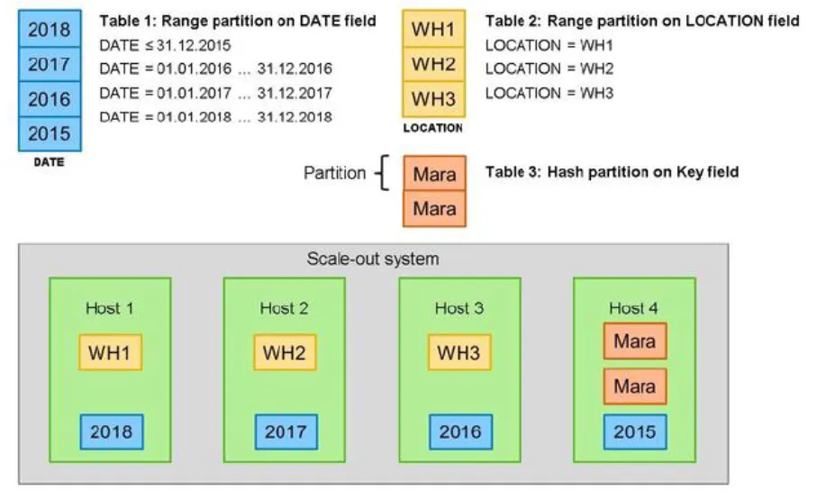 scale up 的效能就是取決於該台的機器效能,但scale out就會有很多參數可以設定。因為你可能不是每台主機的規格大小一樣,有時可能會用到既有設備與新設備混和。所以每台的處理能能力可能不同。在更進一步講述HANA的HA之前我們要來稍微解釋一下在scale out的架構下table的分散模式。
