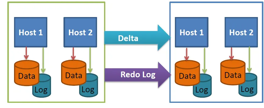 這一個Solution也不僅限於在不同的機房,如果夠有錢也可以在同一個機房實行。System Replication概念就是搞兩套一模一樣的軟硬體然後做同步的動作。下圖中若主要系統有standby host,在另一邊可以不用有standby host.
