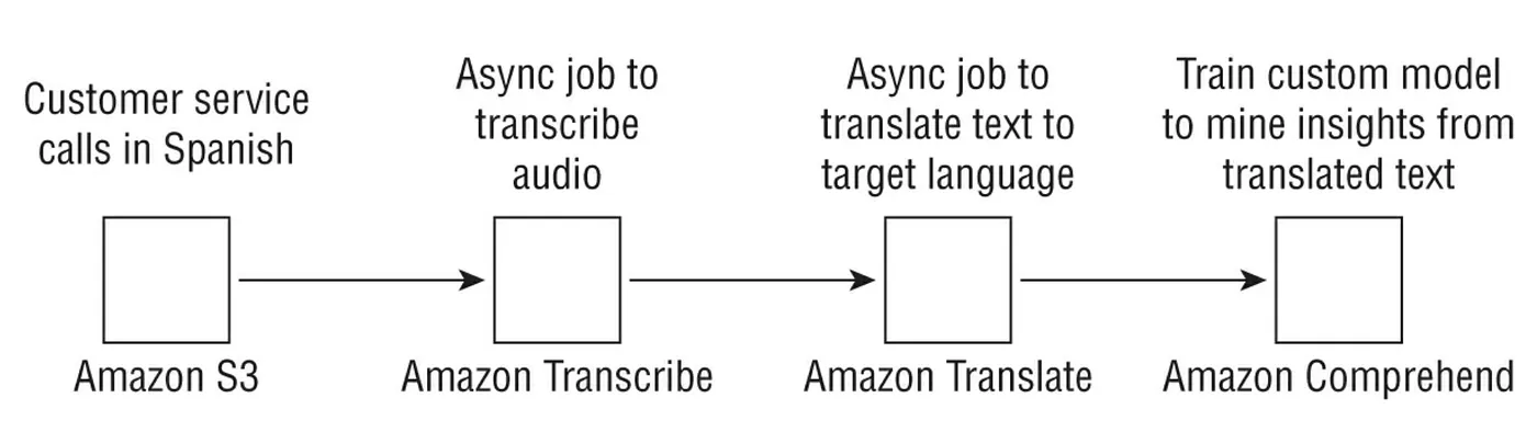 假設專門為一家在全球多個不同國家/地區營運的全球連鎖飯店工作,我們希望匯總和收集客戶服務的線上對談資料以改善客戶體驗。 唯一的問題是,使用場景會發生在不同的語言中,而且用不同的語言建立基於神經網路的翻譯模型既困難又昂貴。 第三方翻譯工具可能還有品質問題,而我們可能更喜歡按使用pay-as-you-go的定價模式。 使用 AWS Translate,這是一項文字翻譯服務,它使用先進的深度學習為沒有任何深度學習經驗的客戶提供高品質的翻譯功能,並採用按需付費的定價結構。