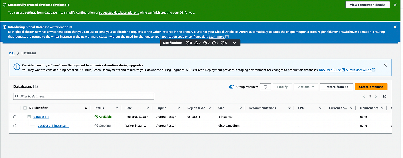 AWS部署資料庫需要花一些時間,所以可以看到資料庫的狀態是 Creating 。