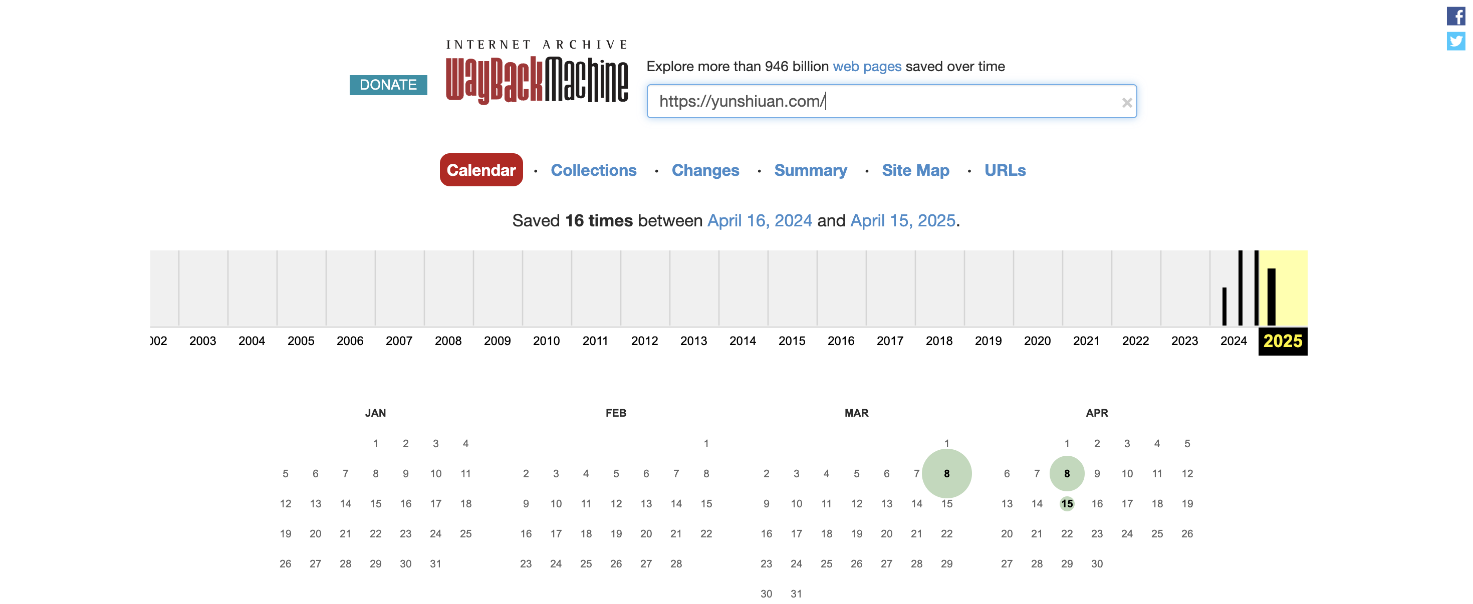 例如我想要看一下 https://yunshiuan.com/ 網站之前的樣子,就可以將網址輸入進去後看看。