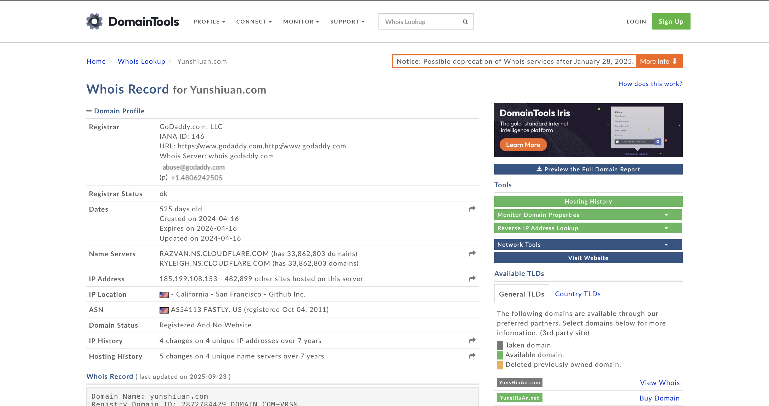 這個網站可以找到關於domain 的一些資訊,包括註冊商、何時註冊、何時到期與最後更新時間等等