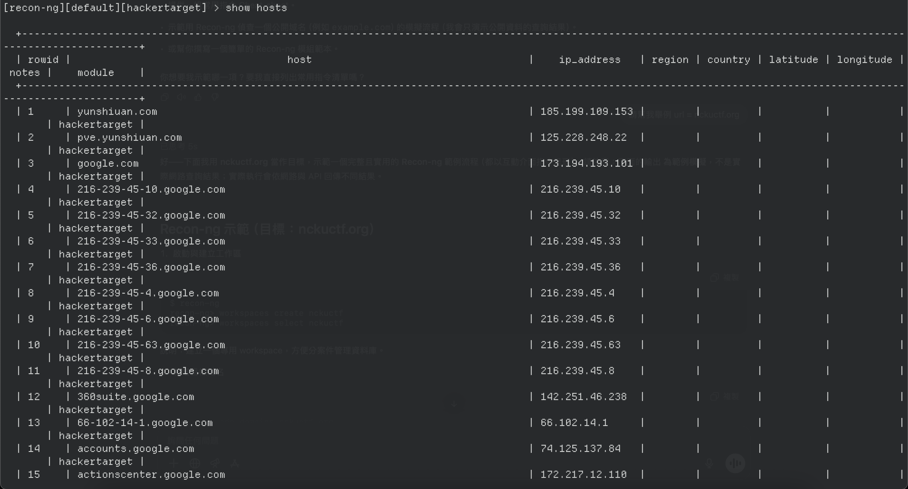 Recon-ng 的 tutorial 連結: https://hackertarget.com/recon-ng-tutorial/