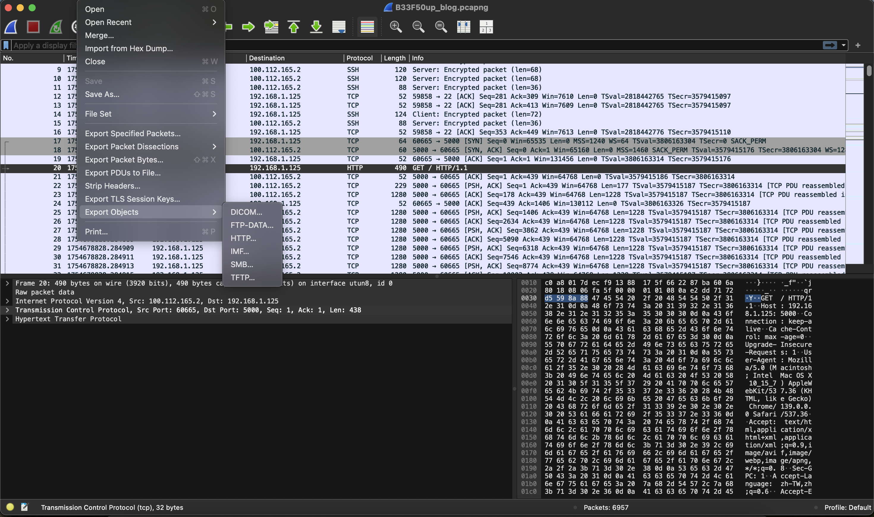 wireshark 提供了可以將封包傳輸的物件(如:圖片、檔案、網頁......) dump 下來的功能
