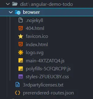 使用以下指令,會將 Angular 專案的程式碼編譯並打包成靜態檔案,讓瀏覽器可以載入並執行這些檔案。