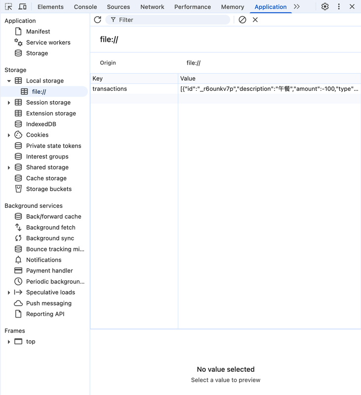 另外要注意,LocalStorage 對每個網域大約只能存總共 10MB 的資料。但我們一筆支出的資料只有單純的文字,所以需要的容量很小,這個記帳本大約可以存10萬筆記錄。之後我們要寫多人使用或是存圖片等大資料的程式時,我們會選擇功能更強(但比較複雜)的工具。