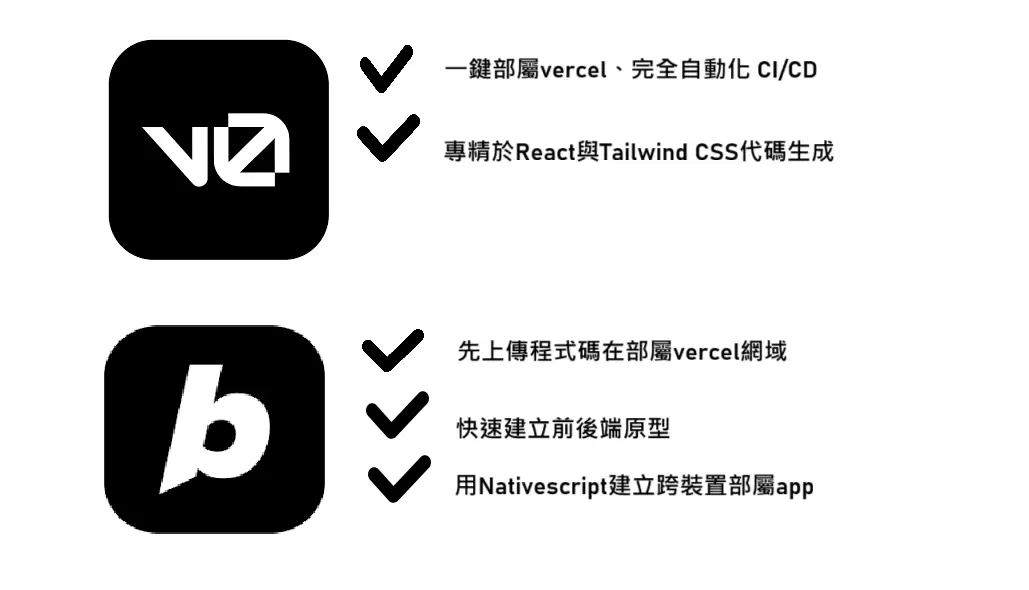 v0.dev | 前端專精(React) | 前端開發 | 快速生成高質UI原型,優秀實時預覽,設計集成 |