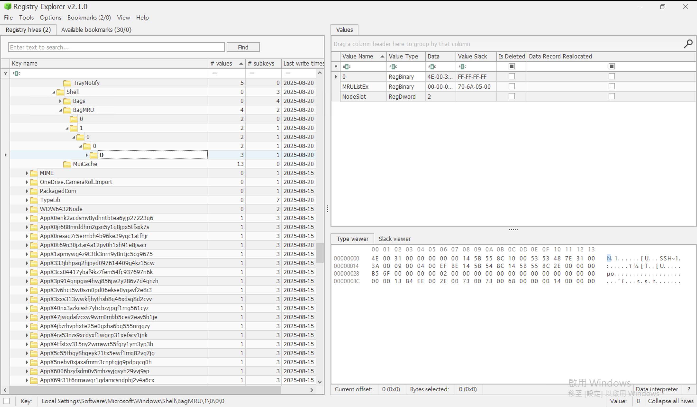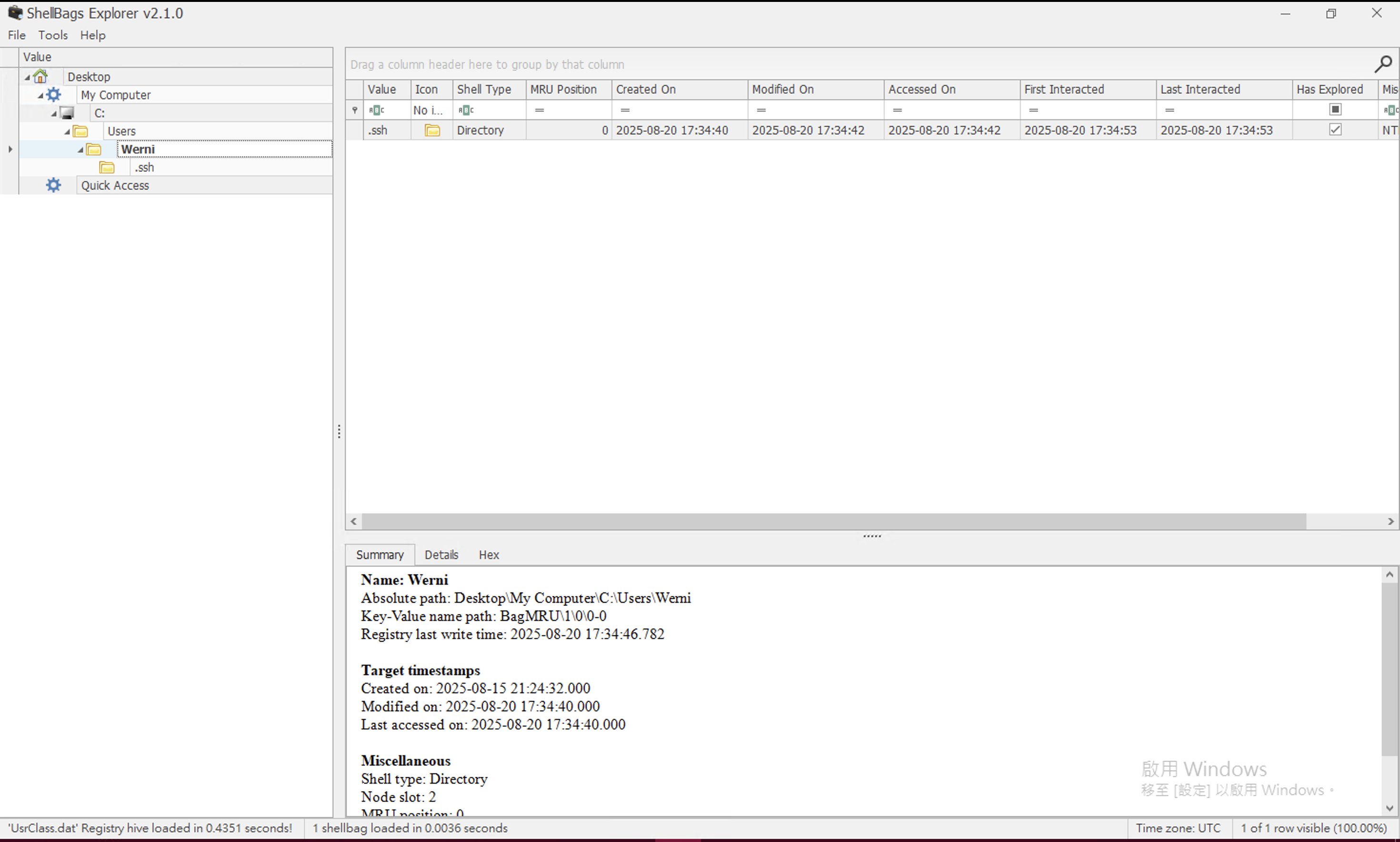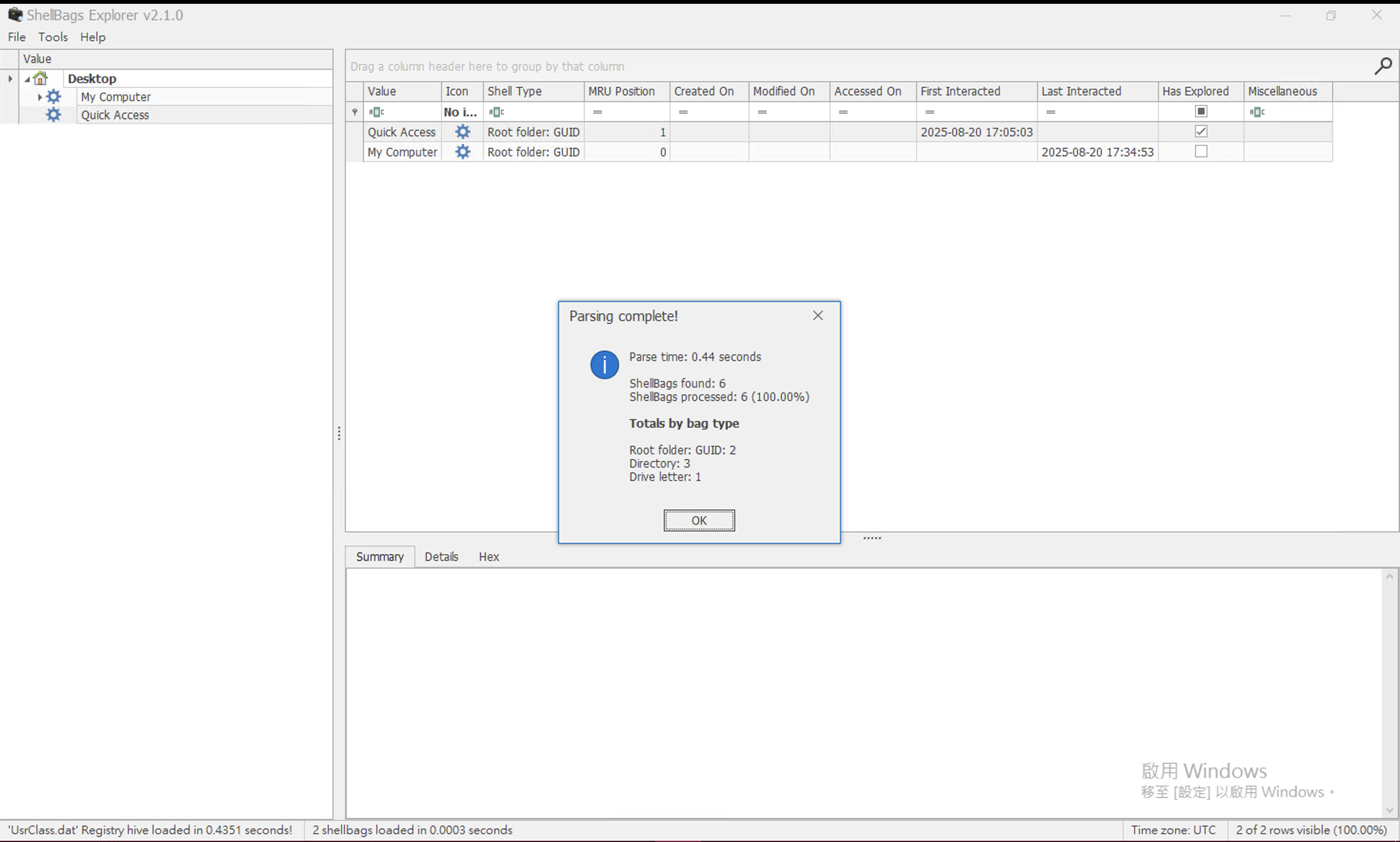 如果直接使用 RegistryExplorer 會很難閱讀,建議使用 Eric Zimmerman's tools 中的 ShellBags Explorer 查看