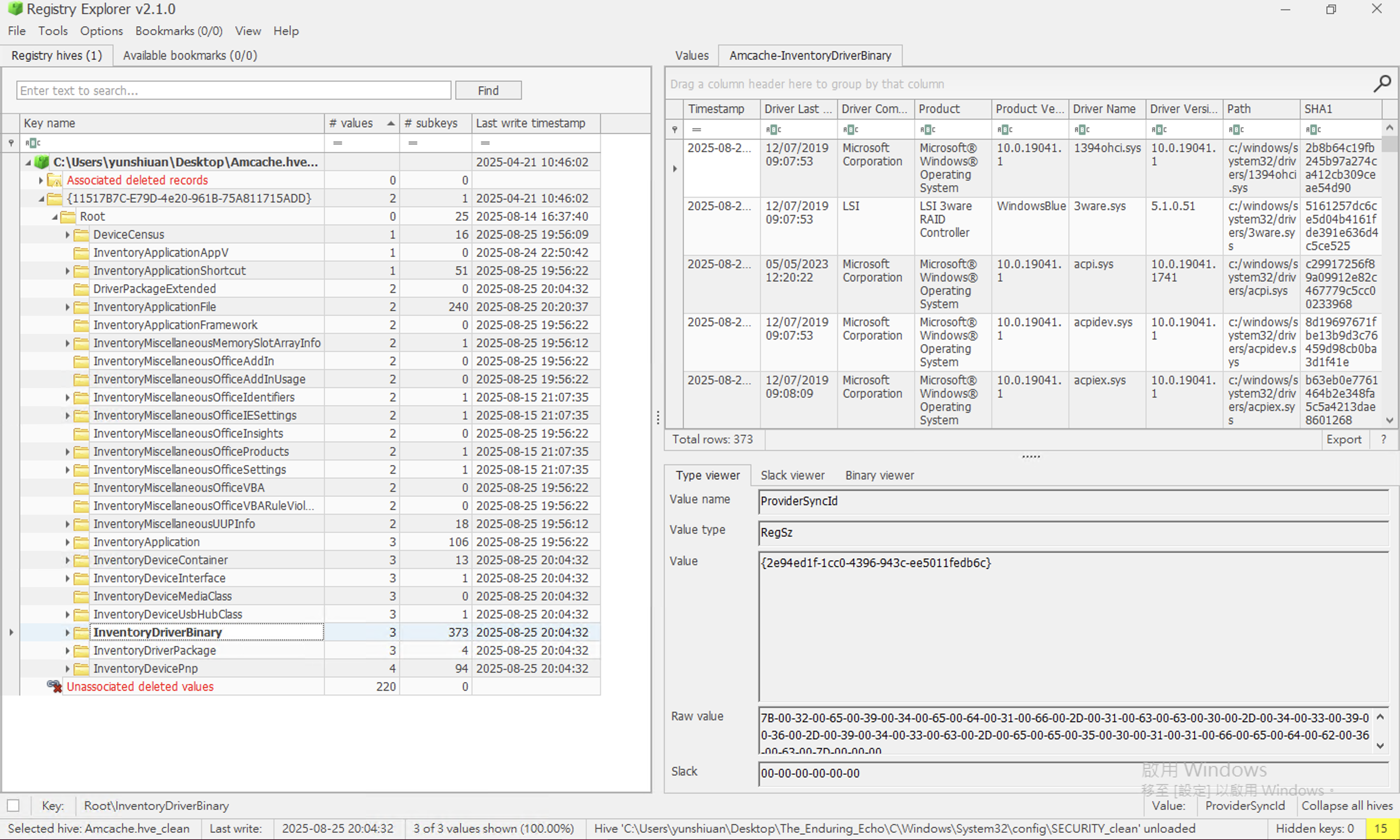 若惡意程式本體被刪除或遭清除,無法從映像直接看到該檔案本身時,可以透過 Amcache 的記錄去驗證該程式曾經被執行過