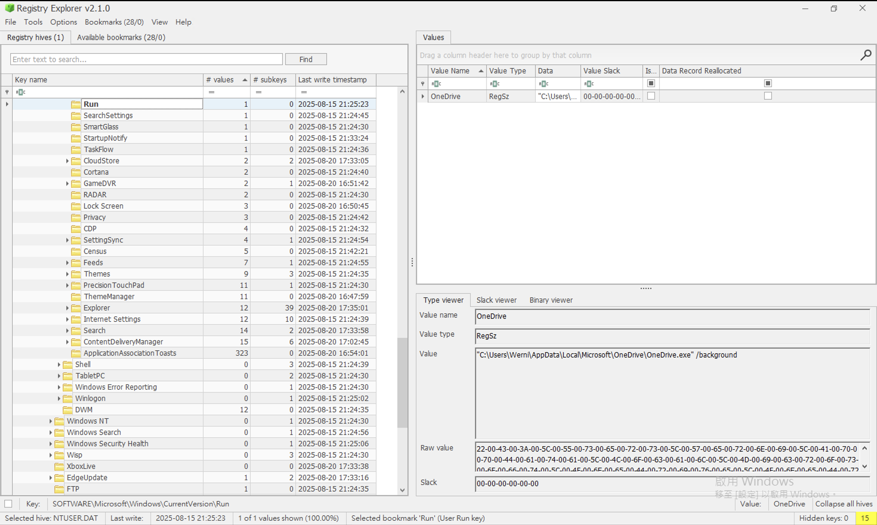 它的介面跟 RegistryExplorer 差不多,一樣需要匯入 hive,看作業系統版本匯入 NTUSER.DAT