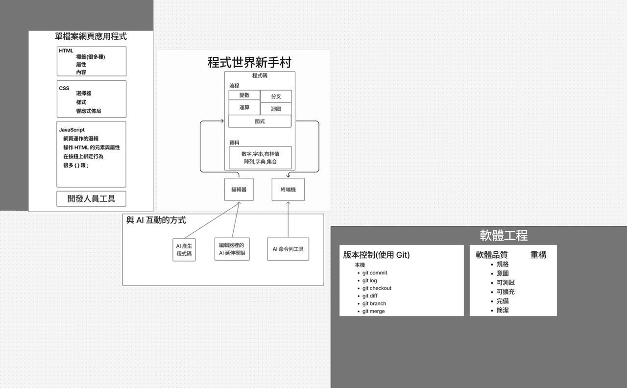 提示:雖然我已經試著讓每一步的改動儘可能的小,但下面每一步建議手動跟著操作看看,並且思考為什麼要這樣改是怎麼運作的,也可以跟老師或是 AI 討論看看。